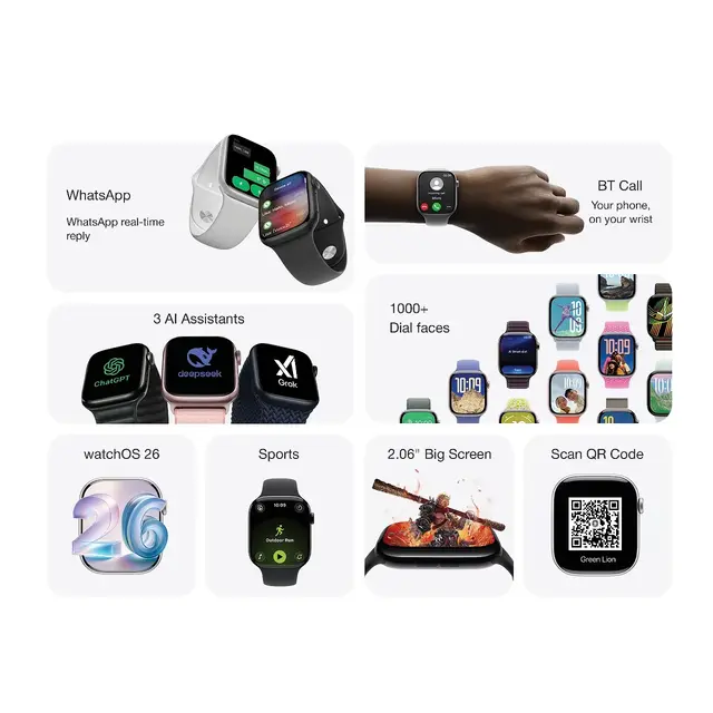 The Green Lion Flex 46 Smart Watch is a powerful and stylish wearable designed for users who want advanced smart features, long battery life, and a modern design in one device. Featuring a large 2.06-inch IPS display, smooth performance, and Bluetooth calling, this smartwatch is ideal for daily use, fitness tracking, and professional life.